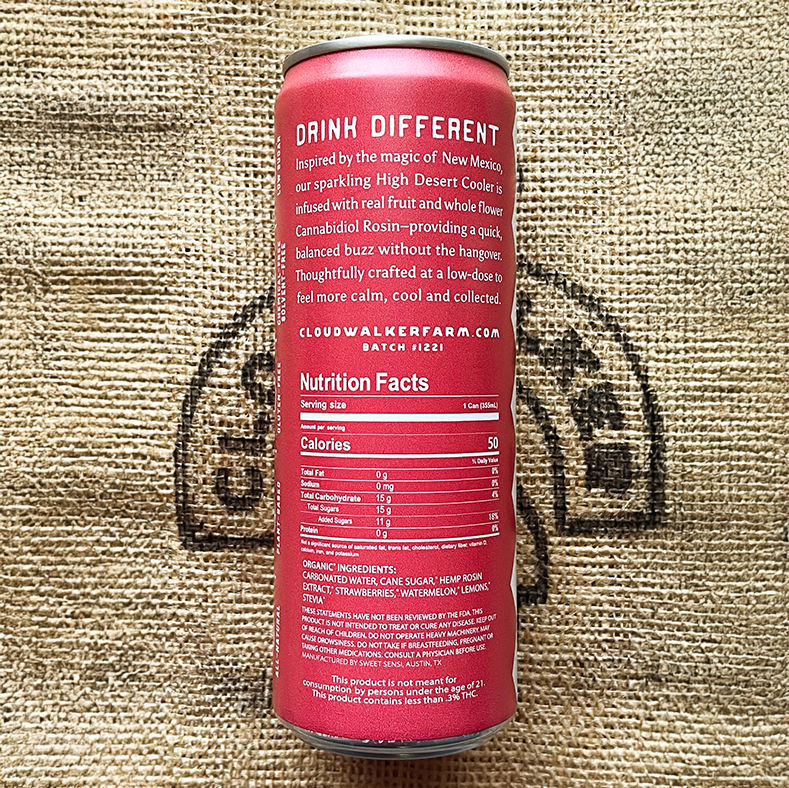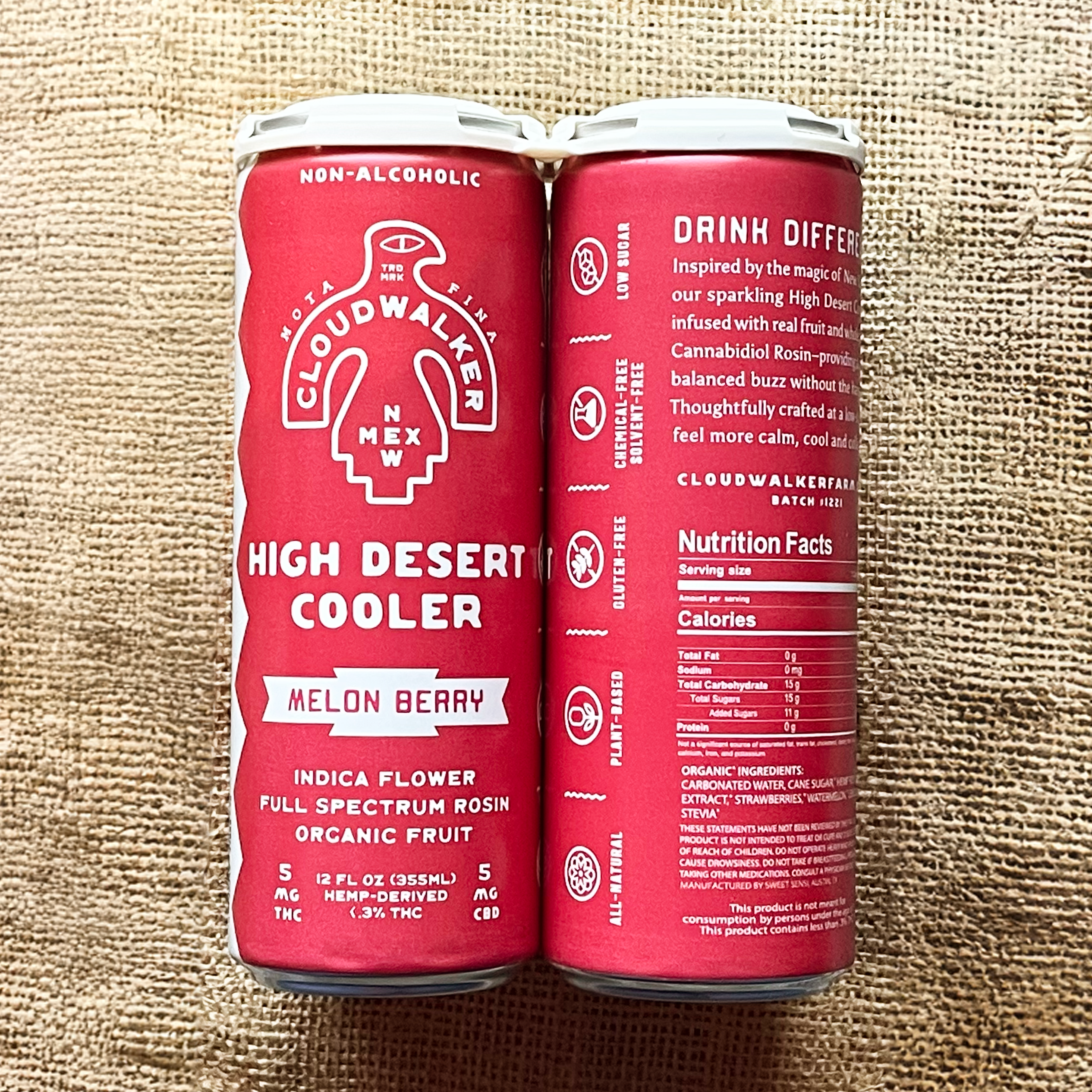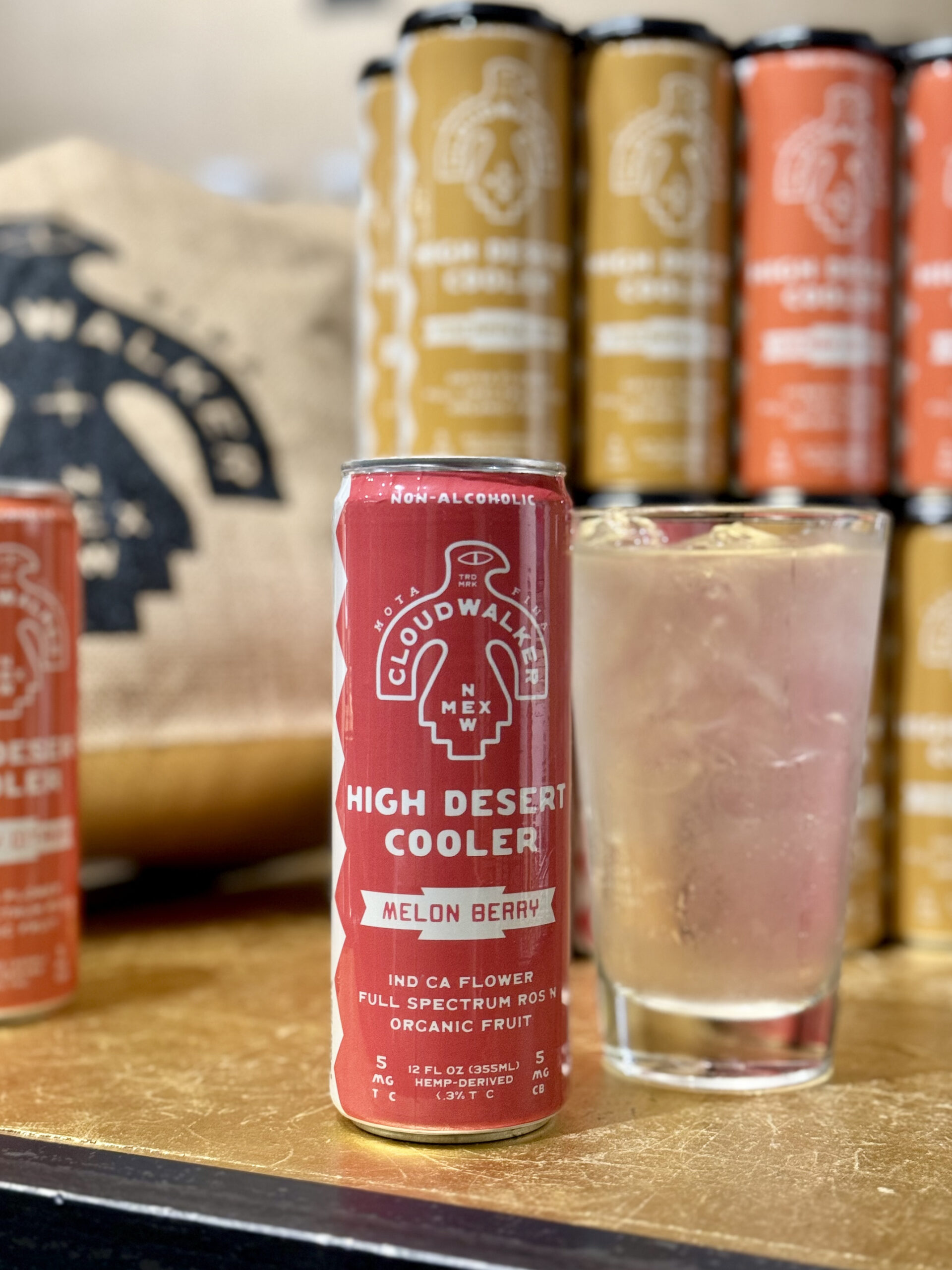 Inspired by the magic of New Mexico, our sparkling High Desert Cooler is infused with real fruit and whole flower Cannabidiol Rosin – providing a quick, balanced buzz without the booze. Thoughtfully crafted at a low-dose to feel more calm, cool, and collected.