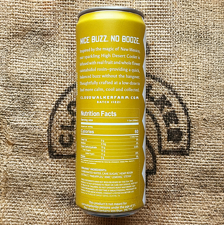 Inspired by the magic of New Mexico, our sparkling High Desert Cooler is infused with real fruit and whole flower Cannabidiol Rosin – providing a quick, balanced buzz without the booze. Thoughtfully crafted at a low-dose to feel more calm, cool, and collected.